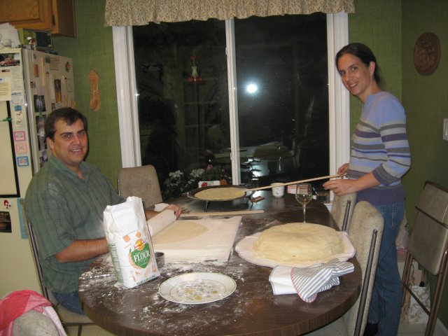 Later in the evening, Shawn takes over rolling while Kiersten continues frying the lefse.