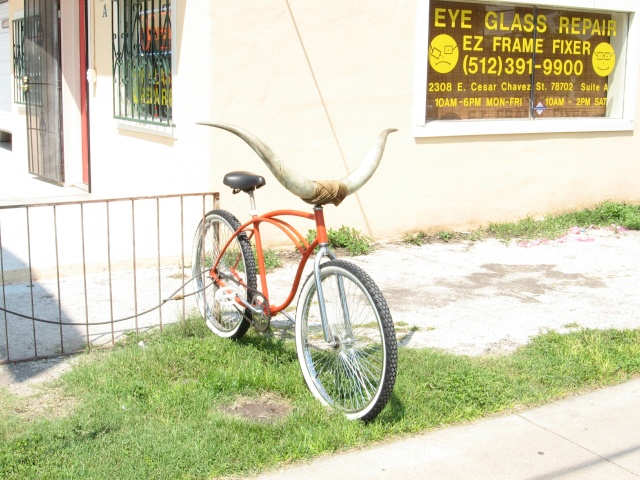 An oil baron's bicycle? Parked outside bicycle shop in East Austin